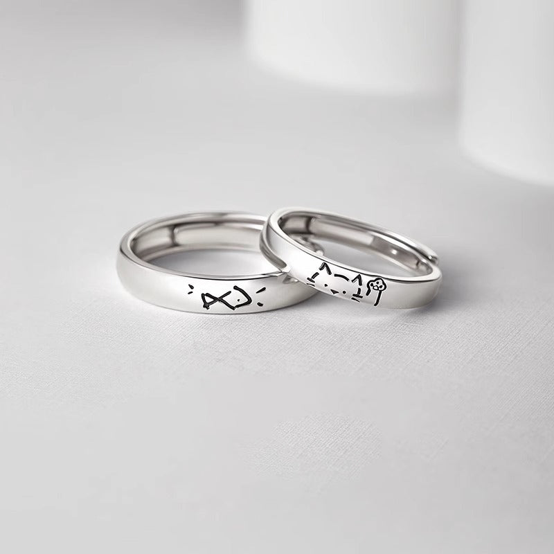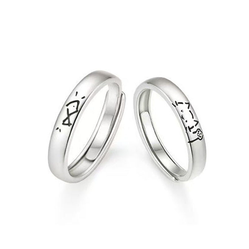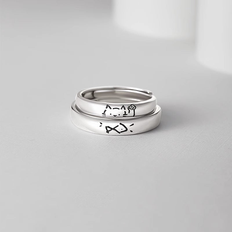 Nhẫn Đôi Bạc S925 Mèo Con Và Cá