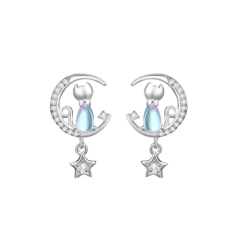 Bông Tai Bạc Nữ Mèo Bóng Sao