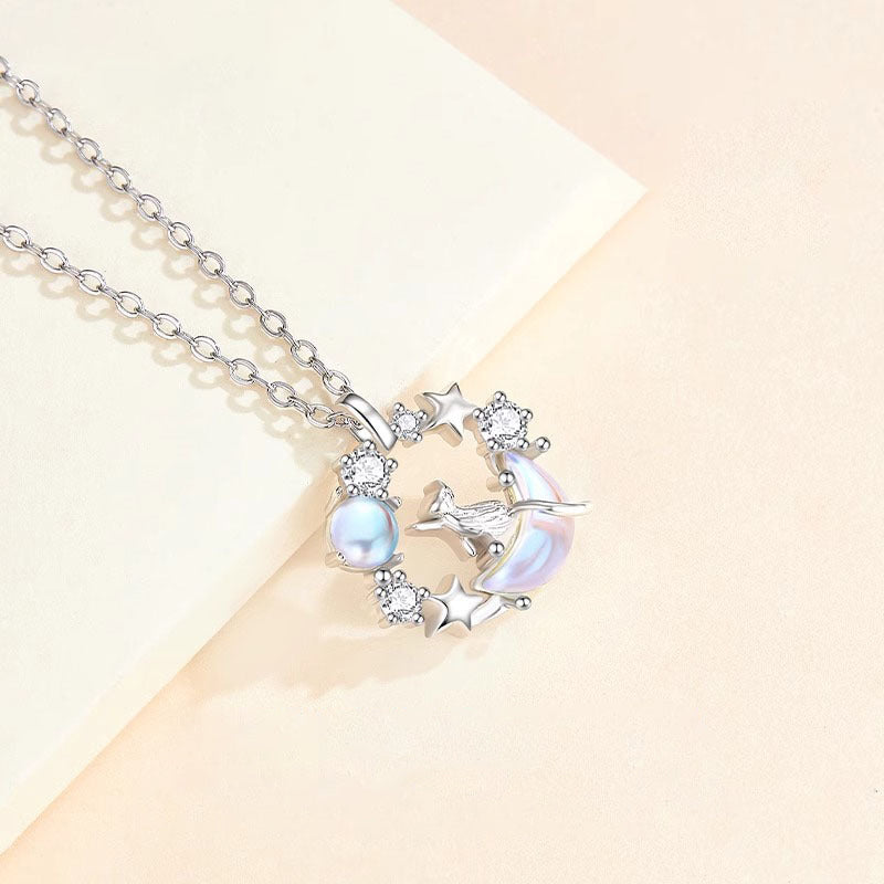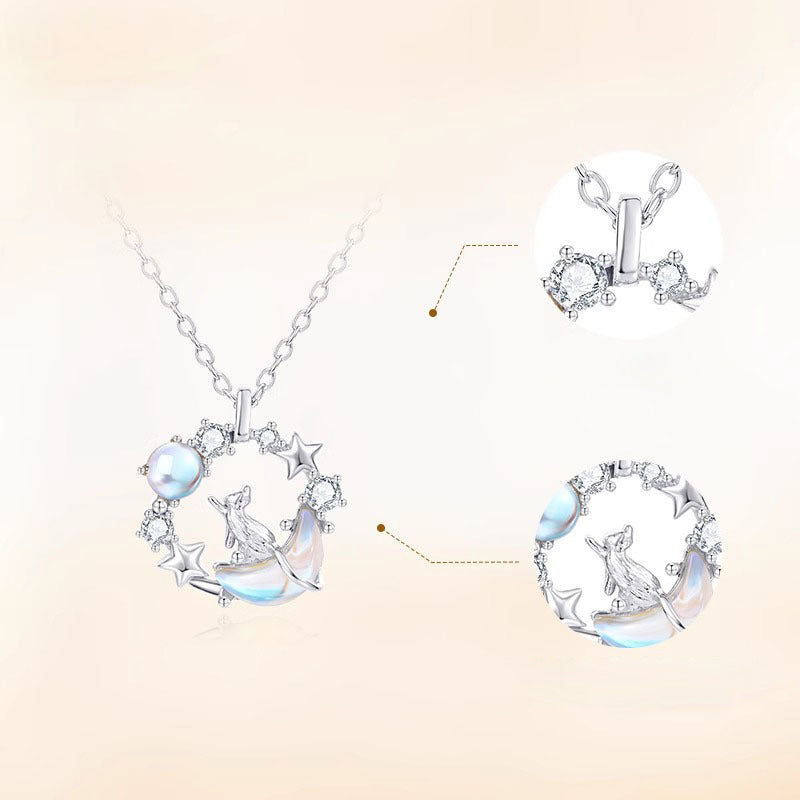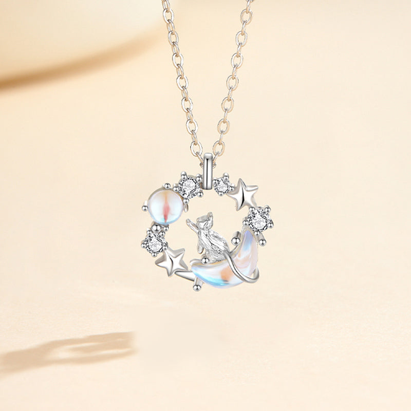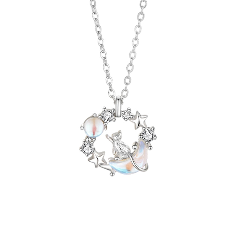 Dây Chuyền Bạc Mèo Dưới Trăng